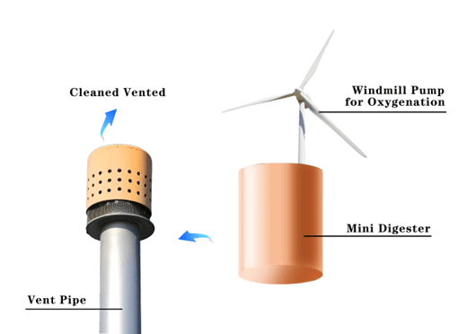 Due to the built space preventing methane from the natural decomposition of biological waste from being released directly from the soil many of these streams are concentrated into pipes and vented in the air. These low level streams can have small bioreactors retrofitted on them to allow cities to adopt a significantly greener profile.